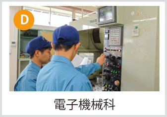 本校には機械科、電子機械科、電気科、工業化学科、テキスタイル工学科の5つの科があります。