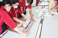 | 実習 | 就職先で活かせる技術・技法を身につけ工業人として必要な知識を学習する。繊維に関する知識もこの実習を通して総合的に習得する。 |