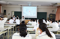 | 課題研究 | 3年間の集大成である課題研究(卒業制作)。染め・織り・デニムの縫製加工・デザインなどの基礎的技術を活かし,生徒一人ひとりがテーマを設定,課題発見・解決・提案を通し自発的・創造的な学習態度を育てる。「課題研究発表会」では複数も企業の方々に来ていただき講評を頂く。「ファッション技術科展」「高校デザイン展」で作品発表を行う。 |