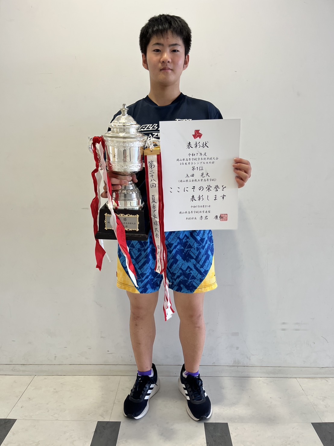 2年生の部において、上田 晃大(機械科2年)が見事に優勝しました。夏休みは自分を追い込むことができ、卓球が強くなる大事な時期です。生徒たちもこの夏休み期間を通して、毎日練習に励みこのような結果を出してくれました。今年も色々な方が協力してくださり生徒のレベルアップが実現できました。4日間、強化合宿に行かせていただいた全国トップクラスの選手が在籍している強豪・朝日大学卓球部の皆様。熱中症対策のためスポーツドリンクやアイスクリームの差し入れしてくださった保護者会の方々やOB会の方々。ありがとうございました。これからも色々な人に応援される倉工の伝統卓球部を守り、発展させていきます。頑張ろう!倉工卓球部!「勝って驕らず、負けて腐らず、いつまでも応援される選手に。」